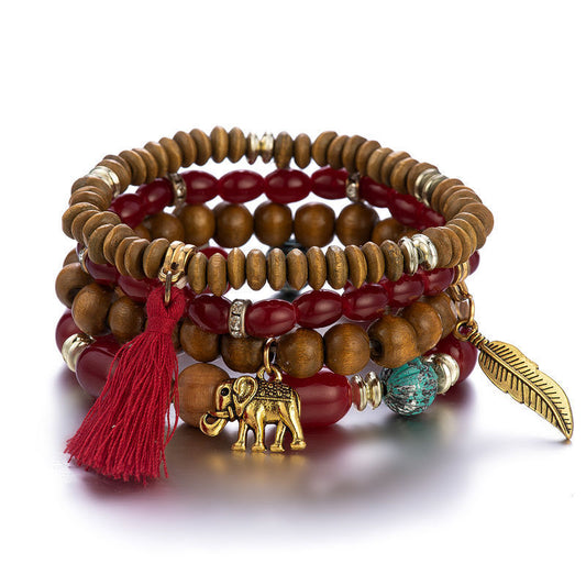 Bracelet rétro multicouche extensible en perles de bois et de verre