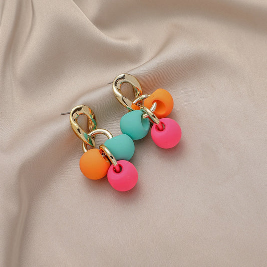 Boucles d'oreilles exagérées en forme de boule de bonbon colorée